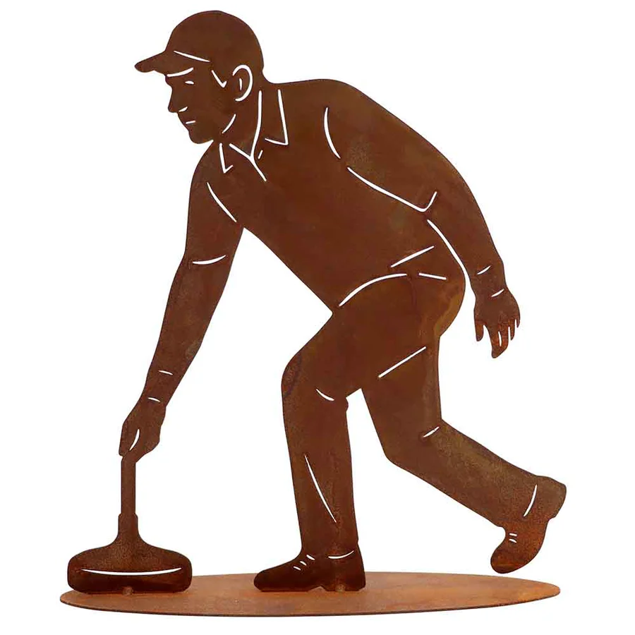 Eisstockschütze Edelrost Figur 34 cm