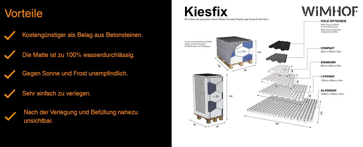 Wenn Sie bei Ihrer Bodengestaltung sowohl eine optisch schöne, als auch naturnahe Lösung anstreben, die zudem noch besonders praktisch ist, ist Kiesfix für Sie die richtige Antwort. Egal, ob Sie Auffahrten, Stellplätze oder Zufahrten gestalten möchten.